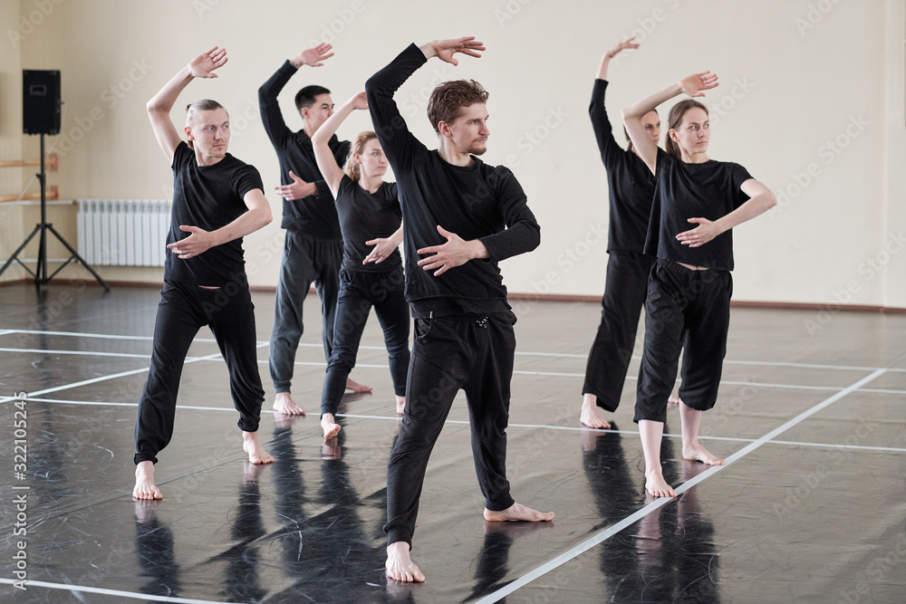 Group Of Male And Female Dancers Learning New Dance In Rehearsal Studio Horizontal Shot Stock Photo Adobe Stock